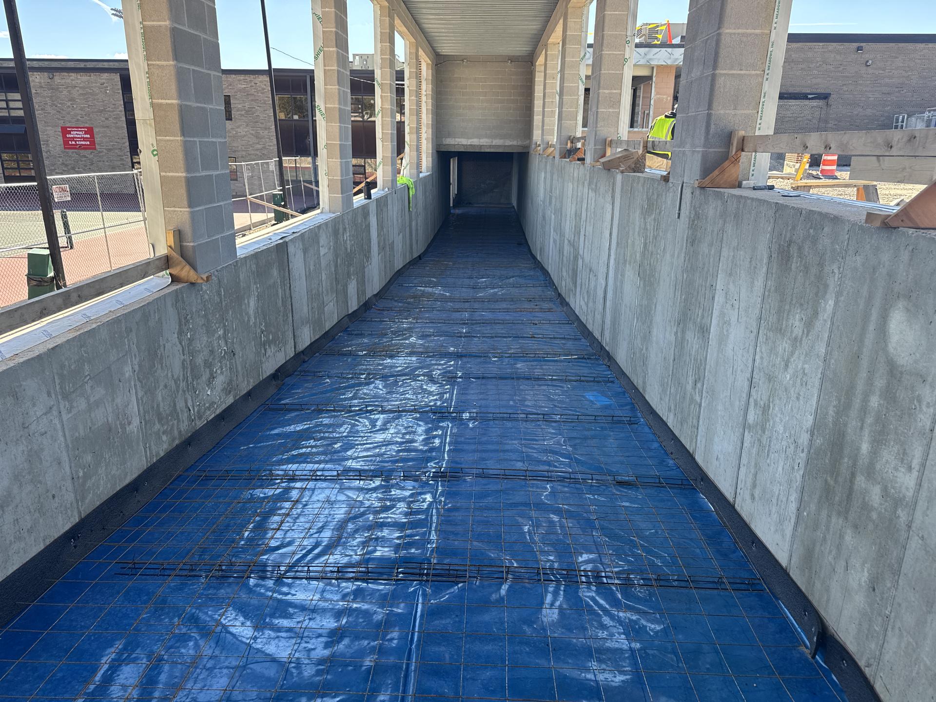 CMU installation is complete. MEP rough-in activities have started.