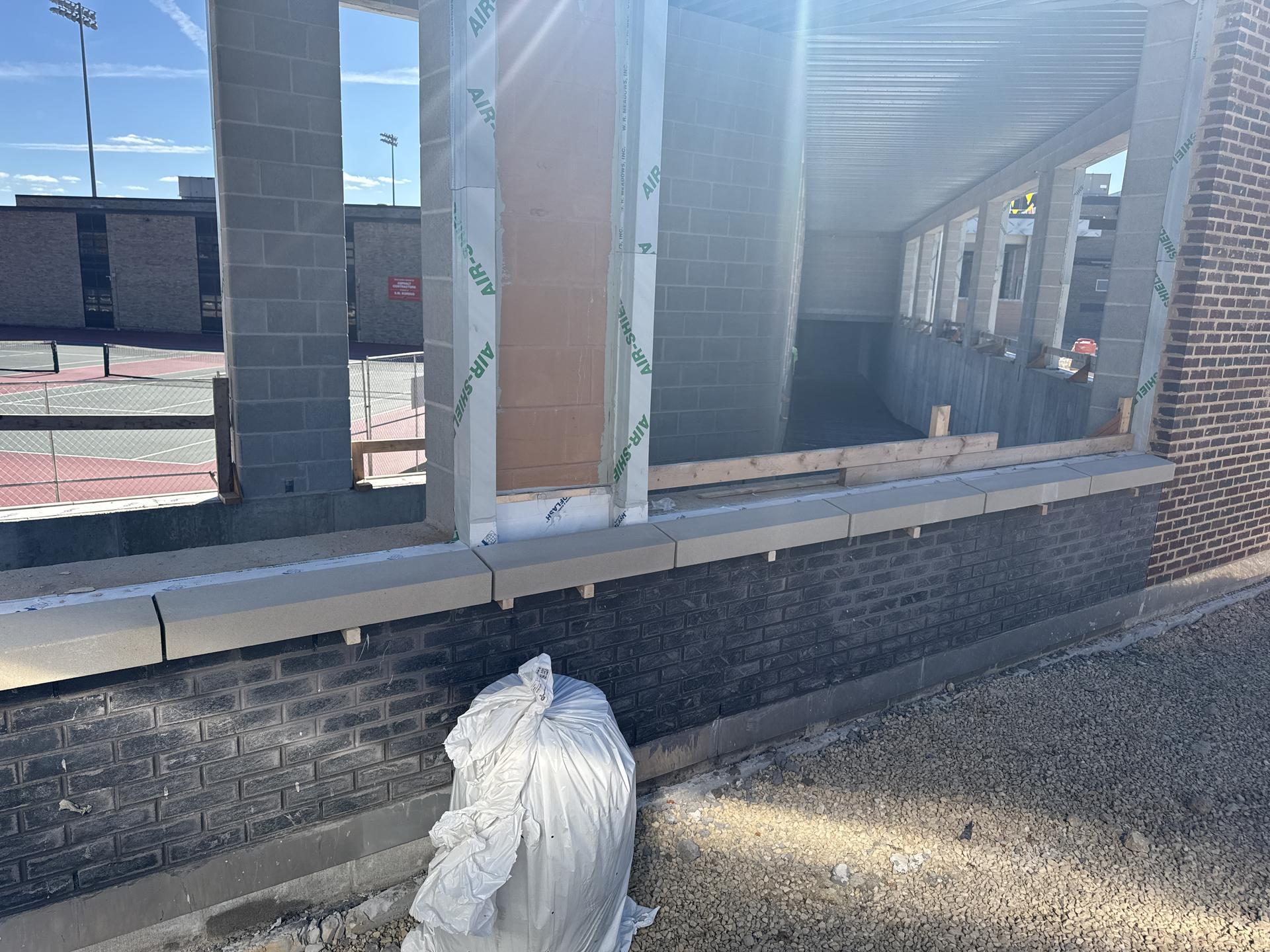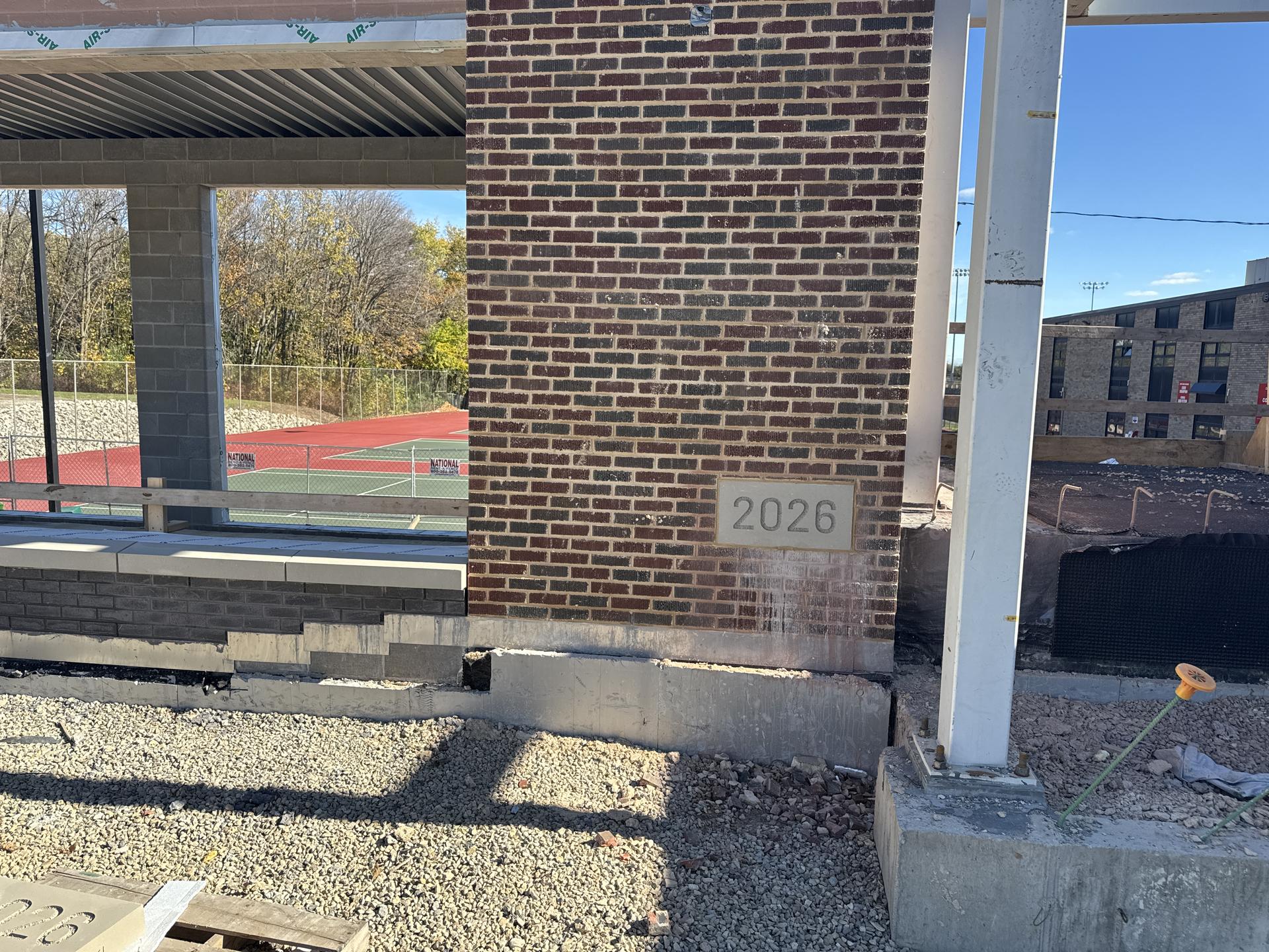 Brick veneer installation is complete. The vestibule roof has been completed. Roofing work has begun, including the tie-in to the existing structure, and is currently awaiting installation of air handler curbs. Preparations are underway for the slab-on-grade pour scheduled for November 3.