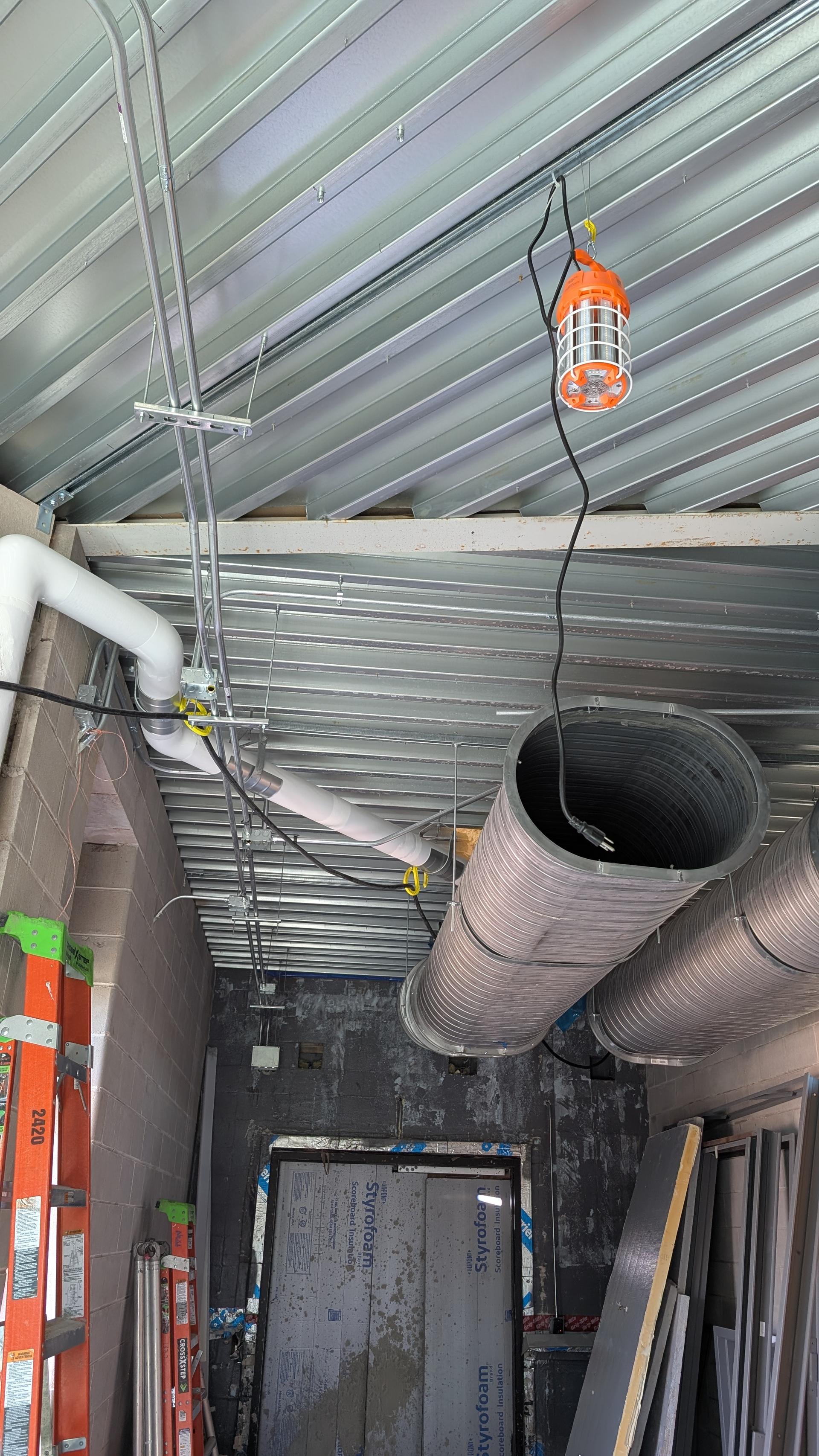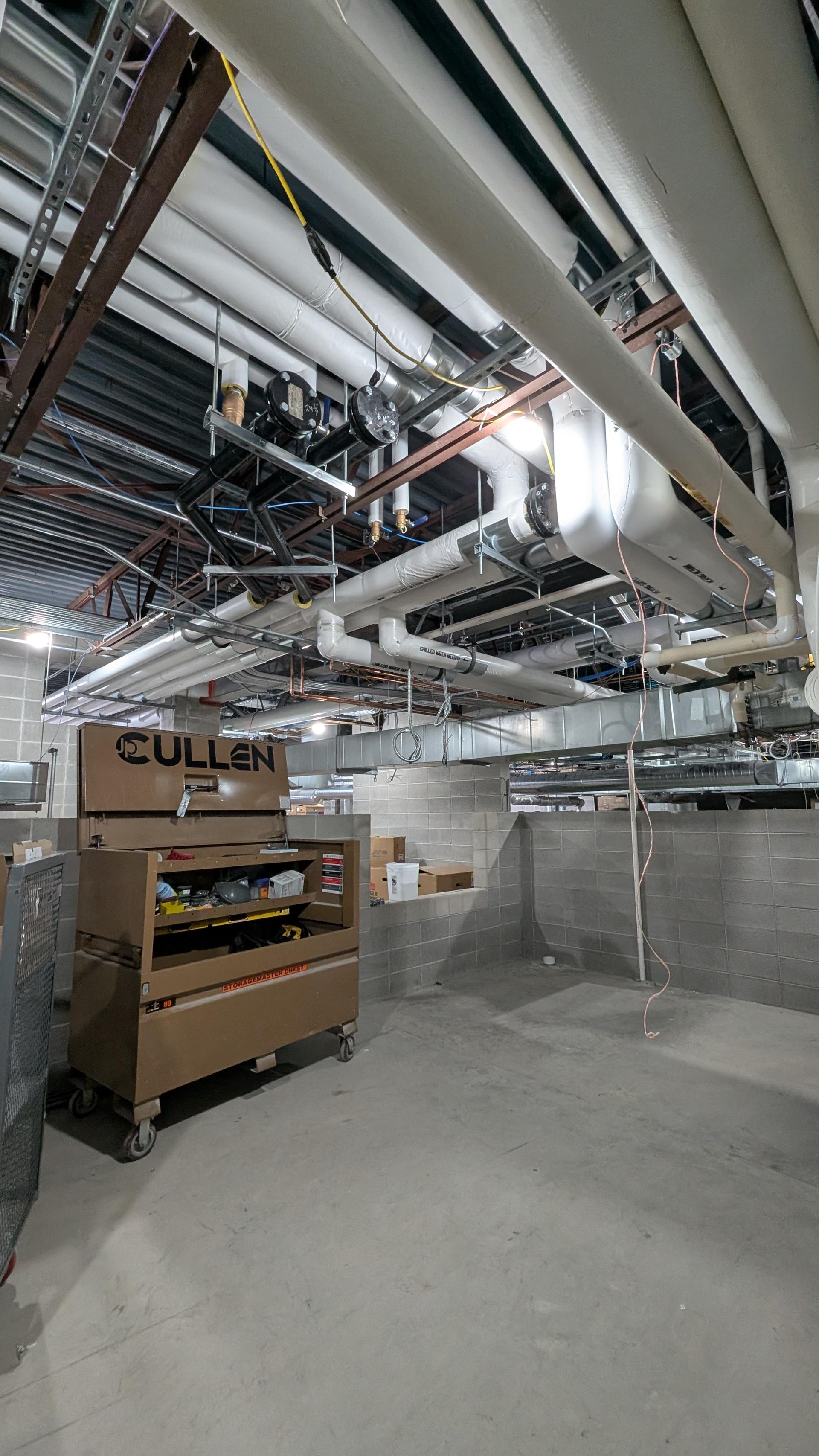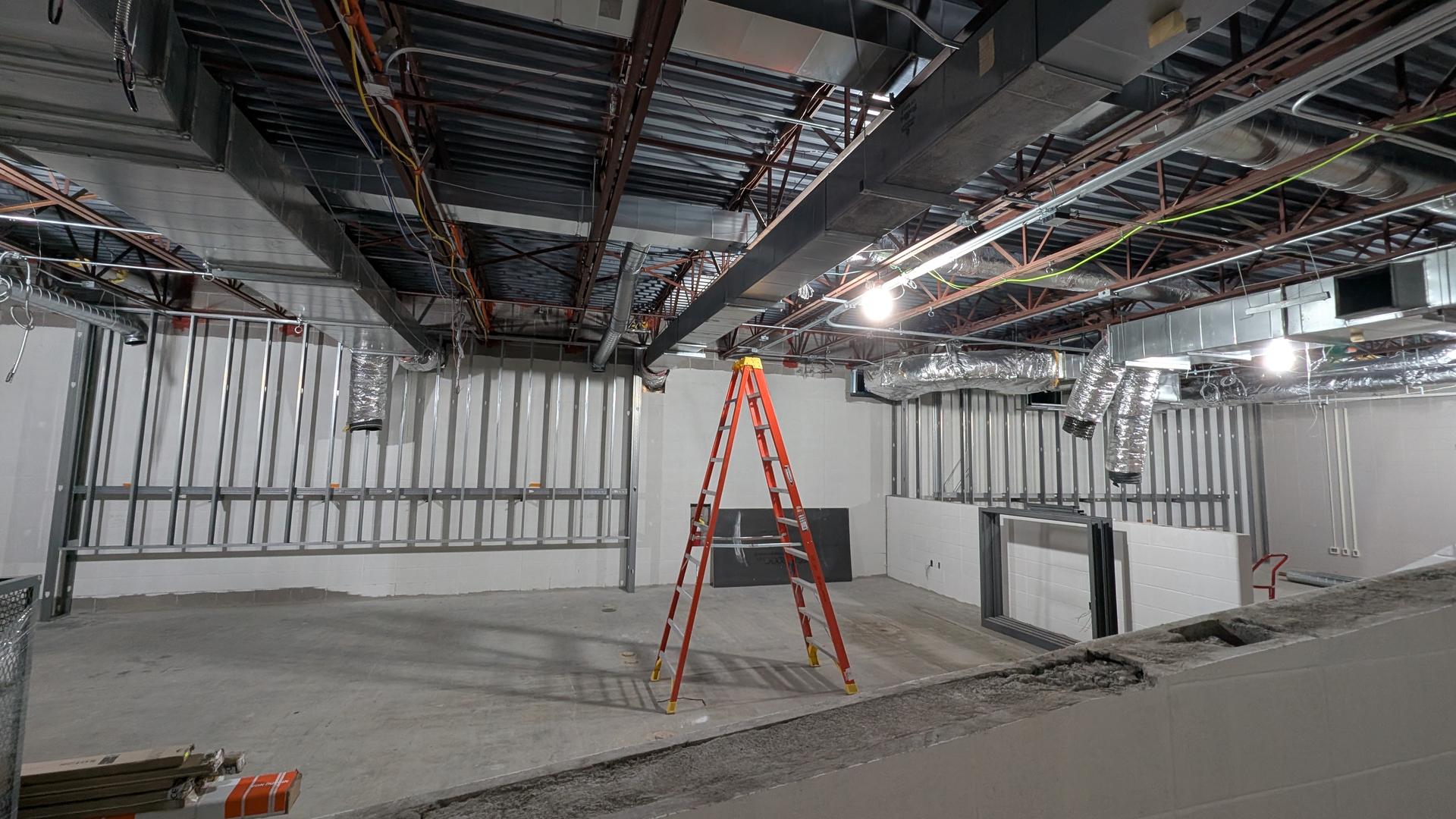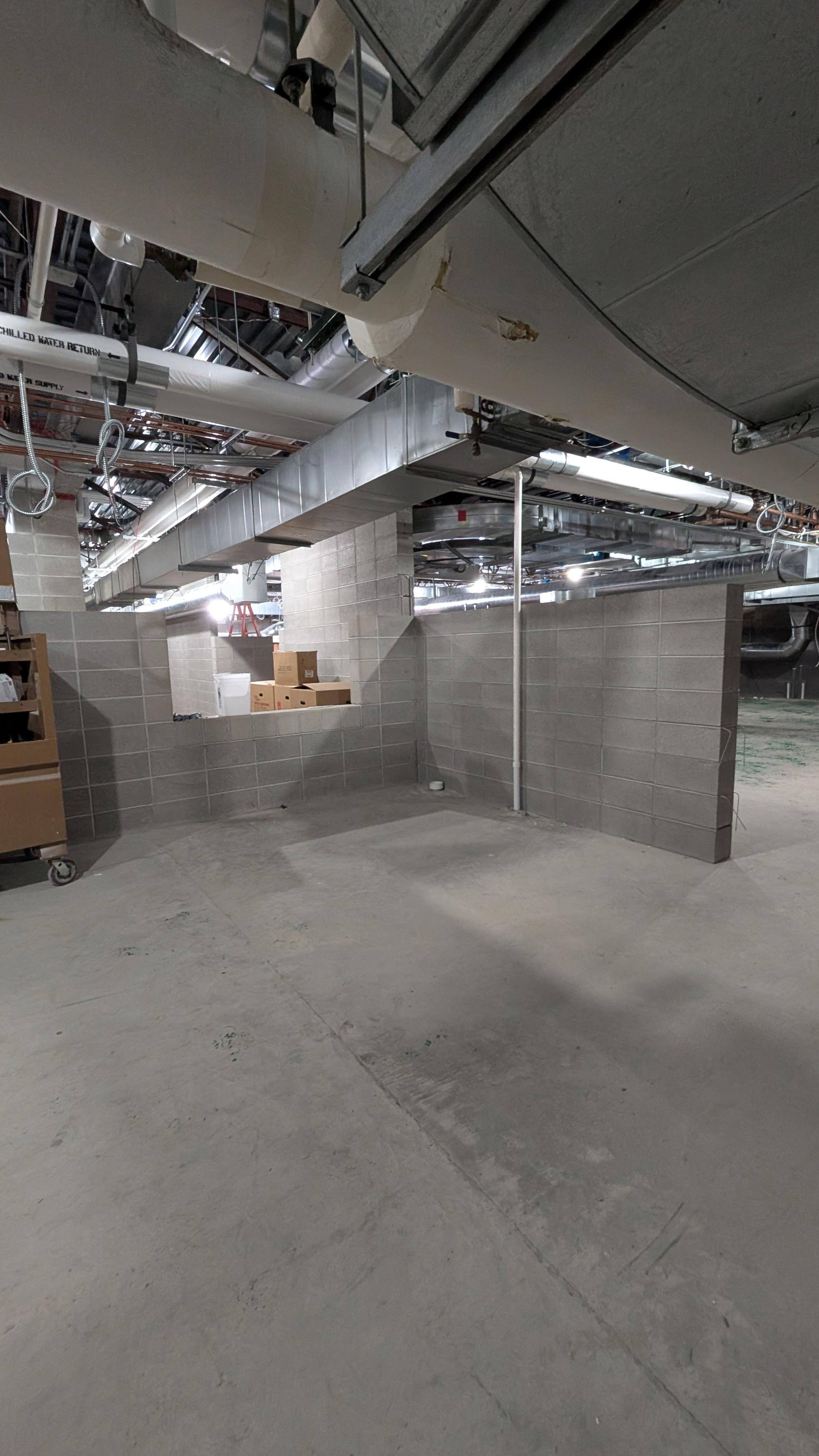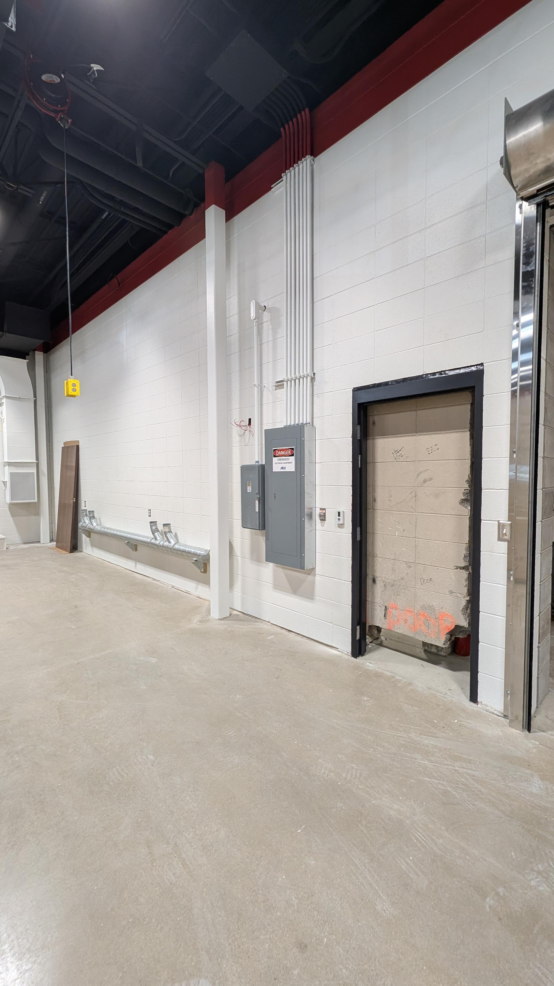 Framing has been completed, creating the structural enclosures required for the equipment installation. The door frame has been installed and secured, and crews will begin preparing the area for drywall and finishing work. Additional coordination with mechanical and electrical teams is ongoing as equipment connections are scheduled.