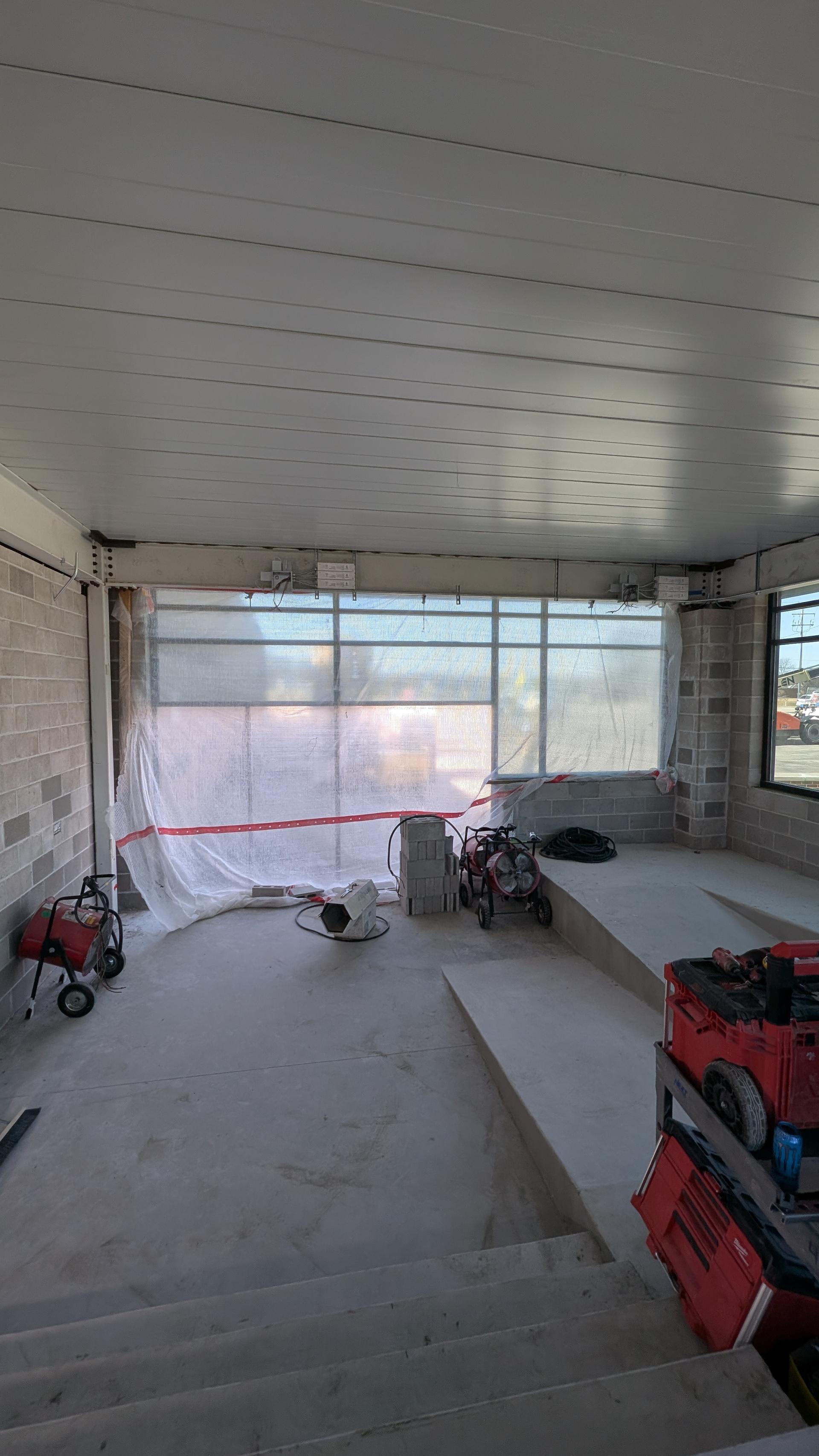 Exterior stoops have been poured and are curing, providing finished access points at the building entrances. Doors have been installed and properly set, improving building enclosure. Final interior painting has been completed in this area, marking a major milestone toward completion. In addition, AHU-13 has been successfully turned on, allowing for initial system operation and conditioning of the space as final finishes and equipment installation continue.