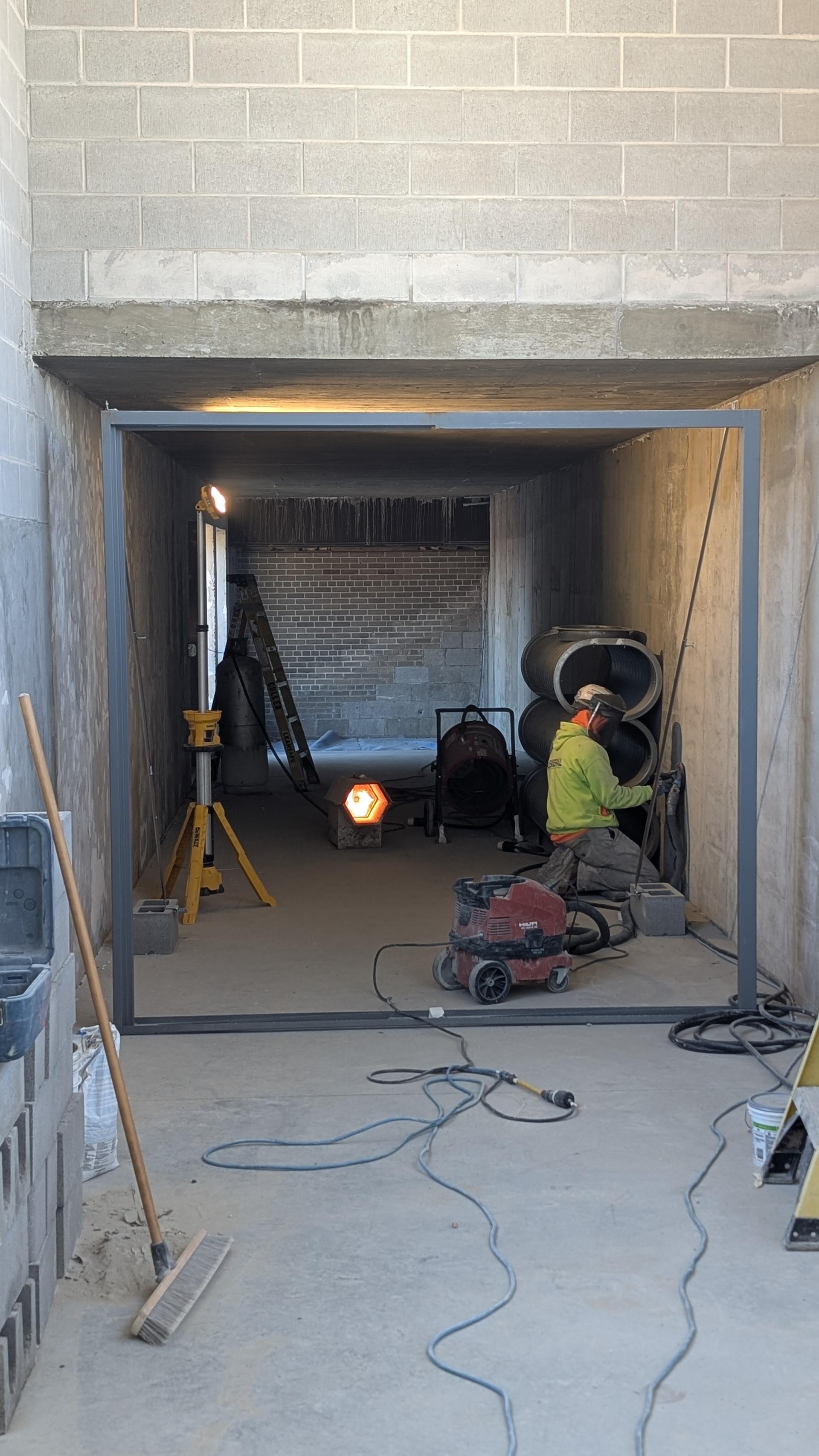 Mechanical, Electric, and Plumbing rough-ins are continuing to progress in both the connector and vestibule areas. Door frames are currently being set and aligned in preparation for upcoming drywall and finishing work. Crews are also preparing the spaces for the next phase of wall board installation once inspections for rough-ins are completed.