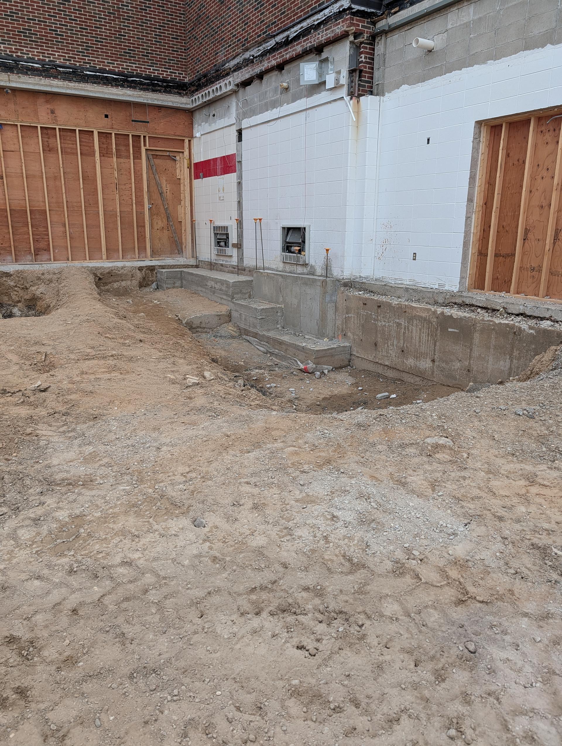 Foundations: The structural skeleton of the new entrance is officially out of the ground. The first phase of concrete footings has been poured and inspected.