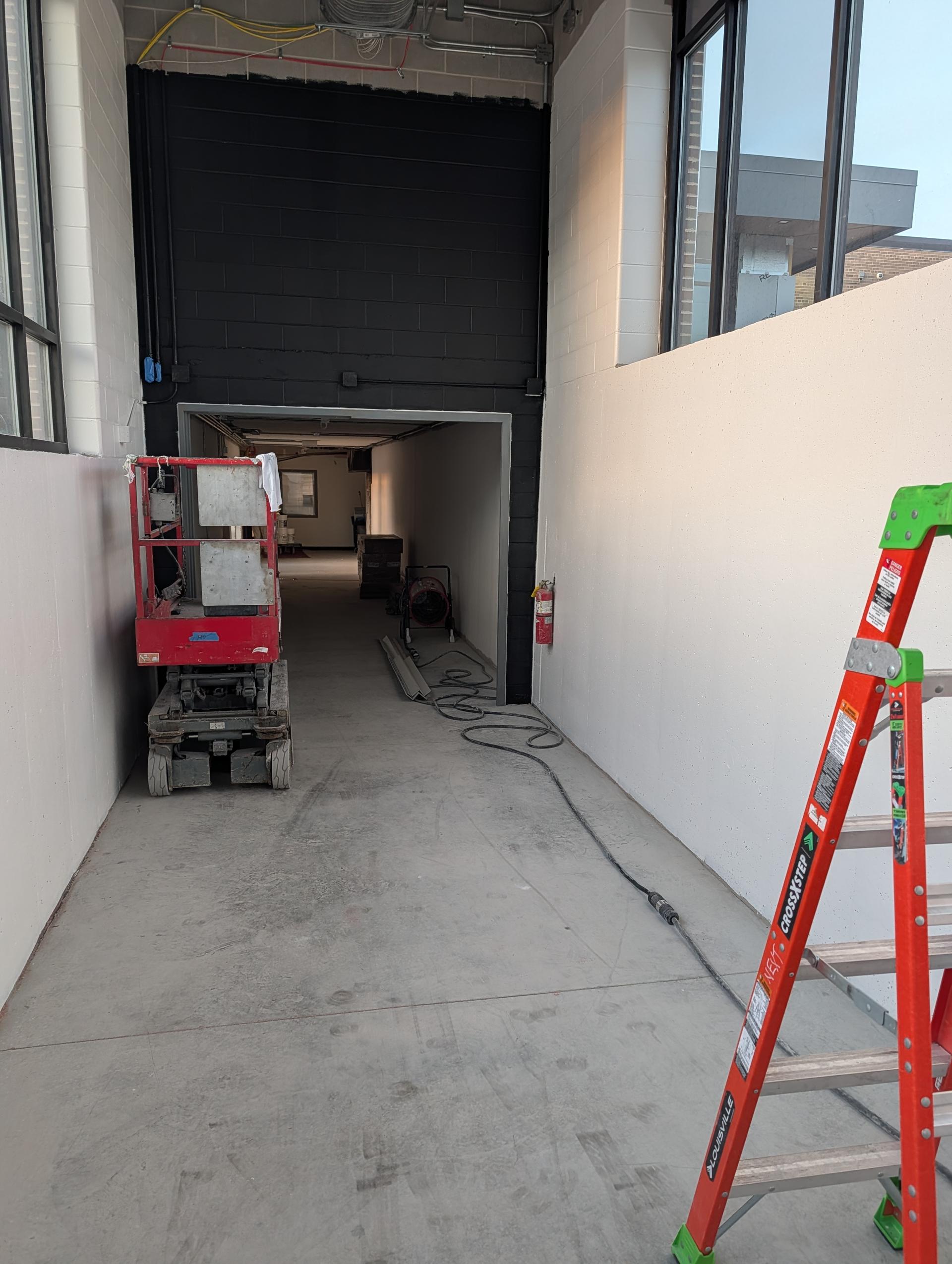 Finishes: The space is beginning to transform visually as prime painting is now underway. This provides a clean backdrop for the upcoming installation of final fixtures and trim.
